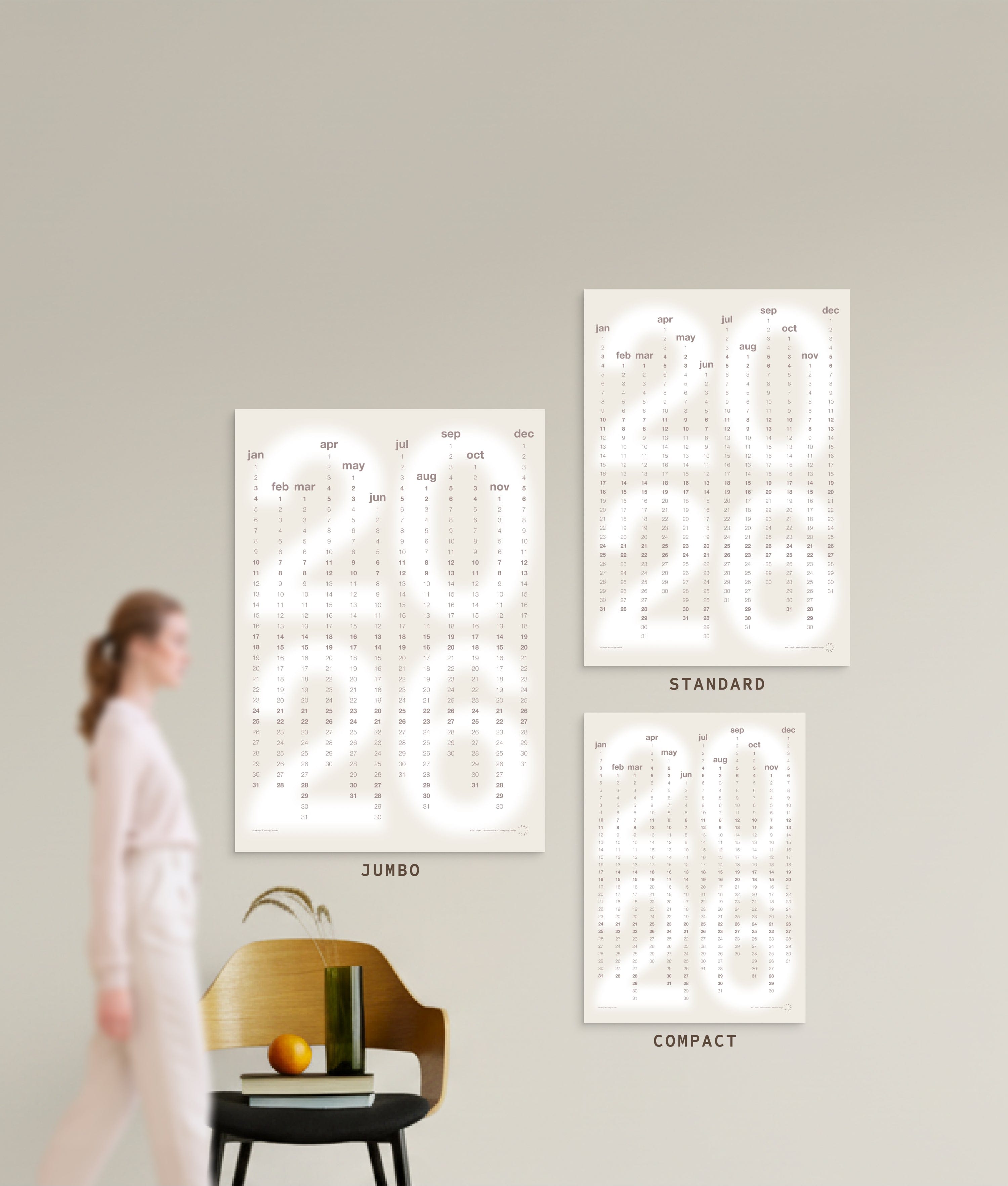 Min in the shades of paper, the yearly wall planner for true minimalists, is inspired by the Pantone colour of the year 2026. It streamlines time management with clarity and legibility. See your entire year at a glance, with weekends subtly highlighted to make quick navigation through your schedule easier. The planner's shades of white blend into the surroundings, helping you focus on what's important.